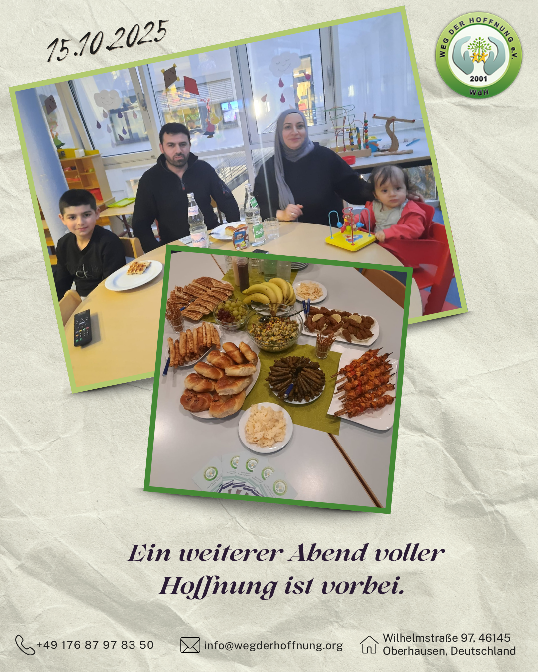 Der Verein Weg der Hoffnung e.V. ist überzeugt, dass diese regelmäßig stattfindenden Treffen für die Familien eine wertvolle Möglichkeit darstellen, durchzuatmen. Mit jeder dieser Begegnungen wächst ein immer stärkeres Unterstützungsnetzwerk.