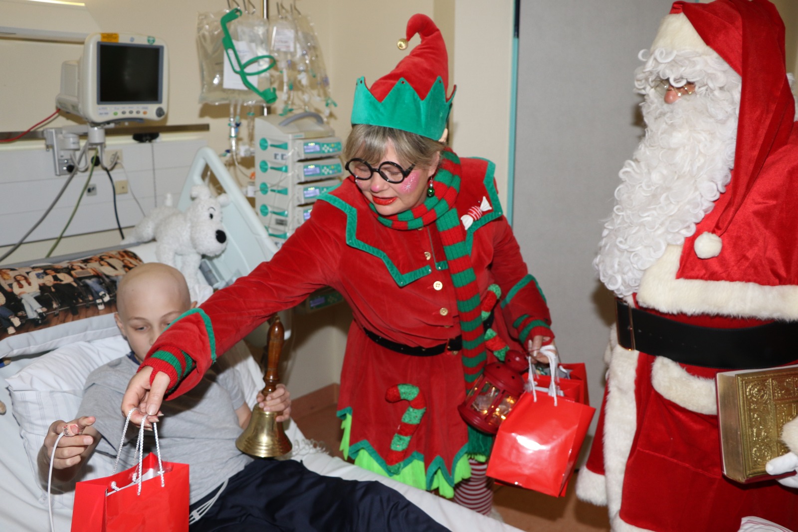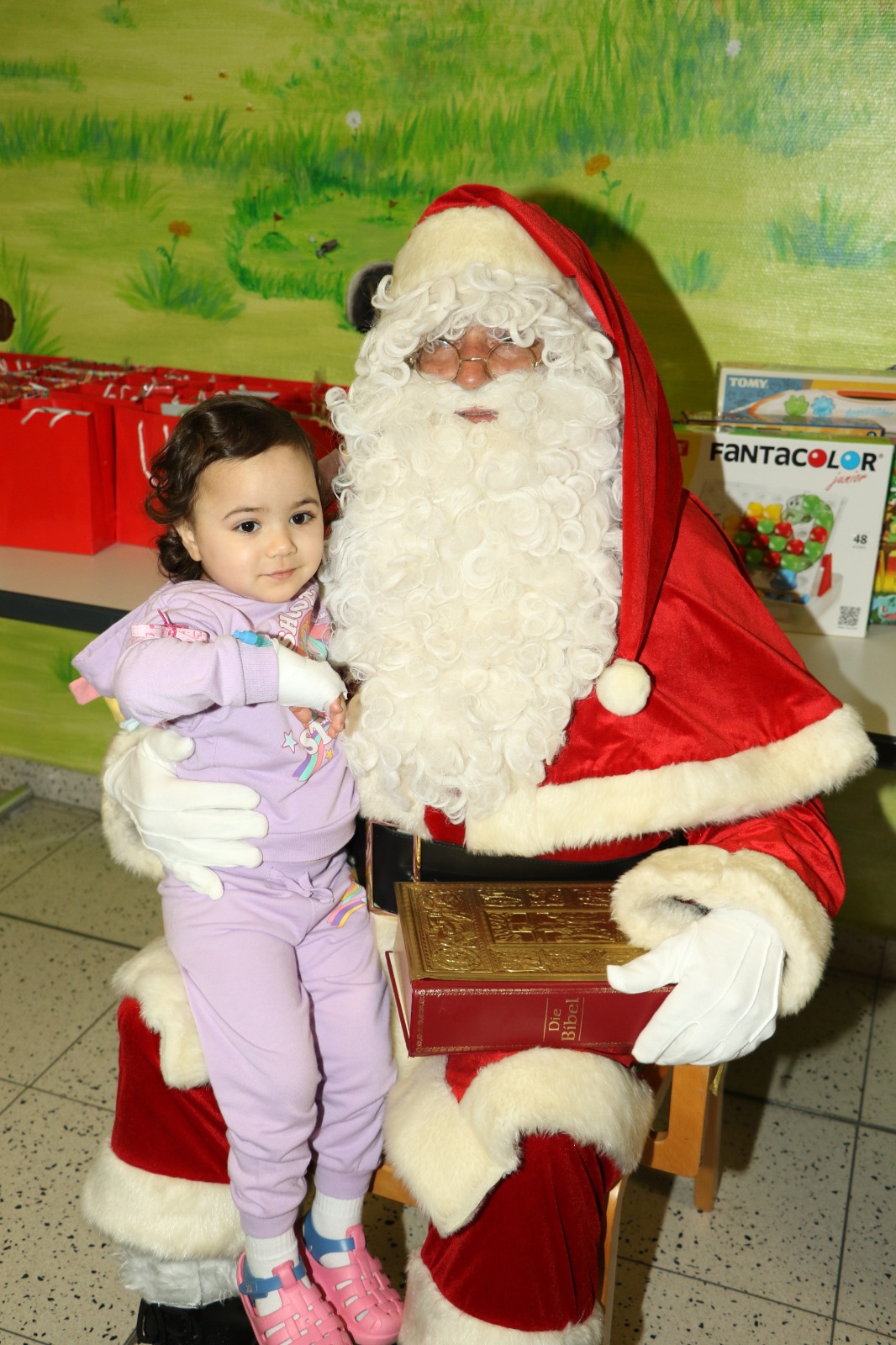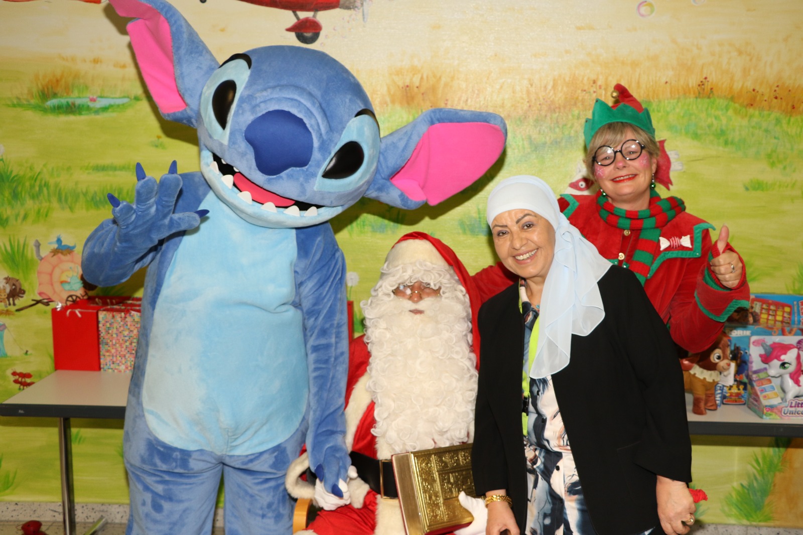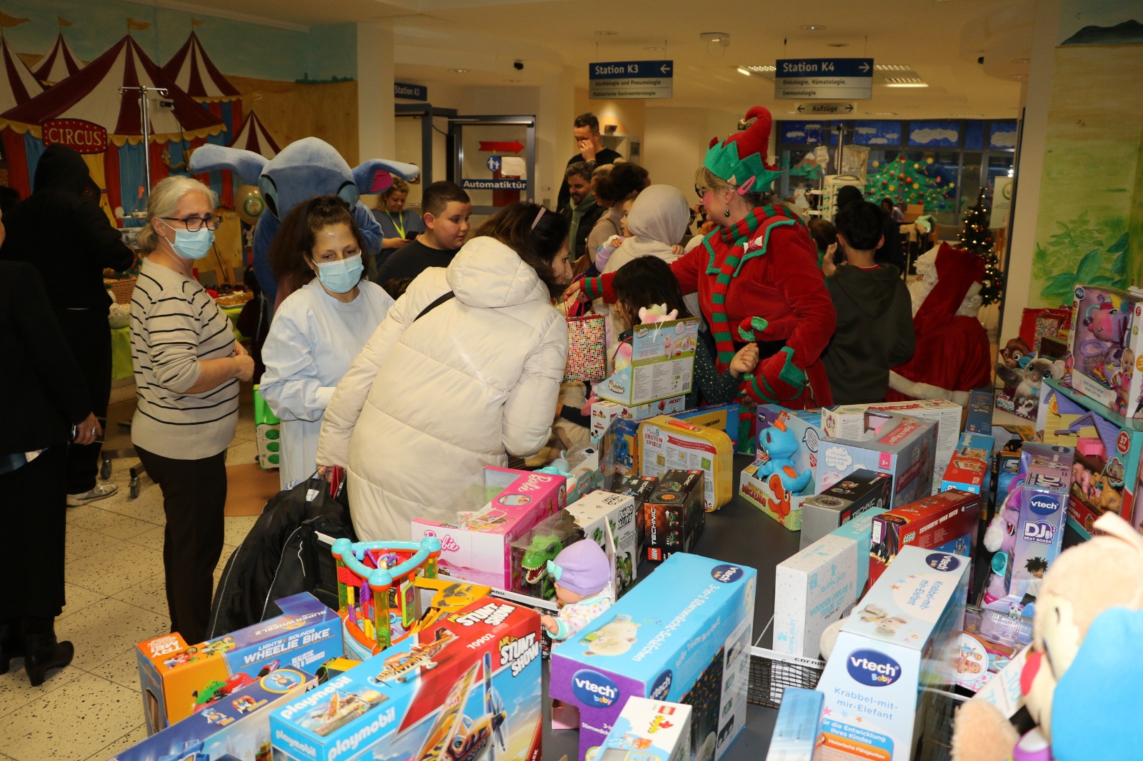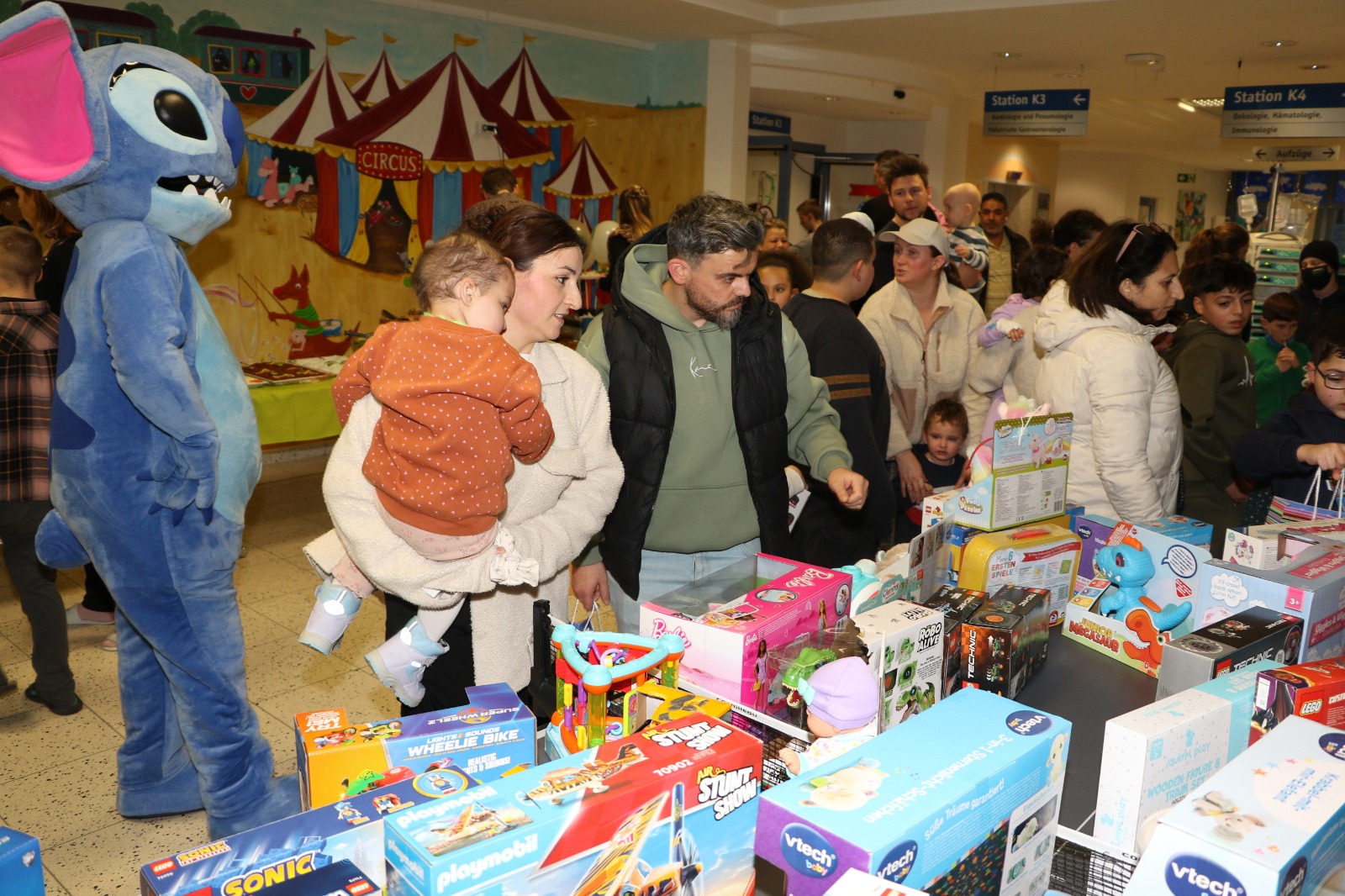 Dann wurde es festlich und magisch zugleich: Der Nikolaus besuchte die Station und hatte nicht nur Zeit für liebe Worte, sondern auch für strahlende Kinderaugen. Jedes Kind durfte sich über liebevoll ausgewählte Geschenke freuen – kleine Aufmerksamkeiten mit großer Wirkung. Zusätzlich erhielt jedes Kind eine prall gefüllte Tüte mit Süßigkeiten, die für viele ein Stück unbeschwerte Freude bedeutete. Als schließlich Stitch erschien, war das Glück vollkommen – Kinderlachen erfüllte den Raum, und für einen Moment schien alles andere in den Hintergrund zu treten.