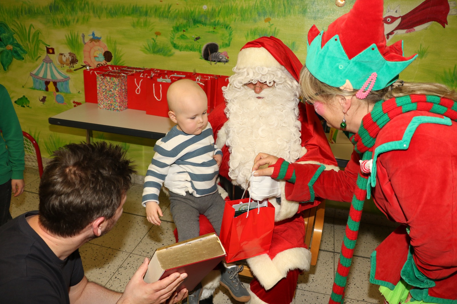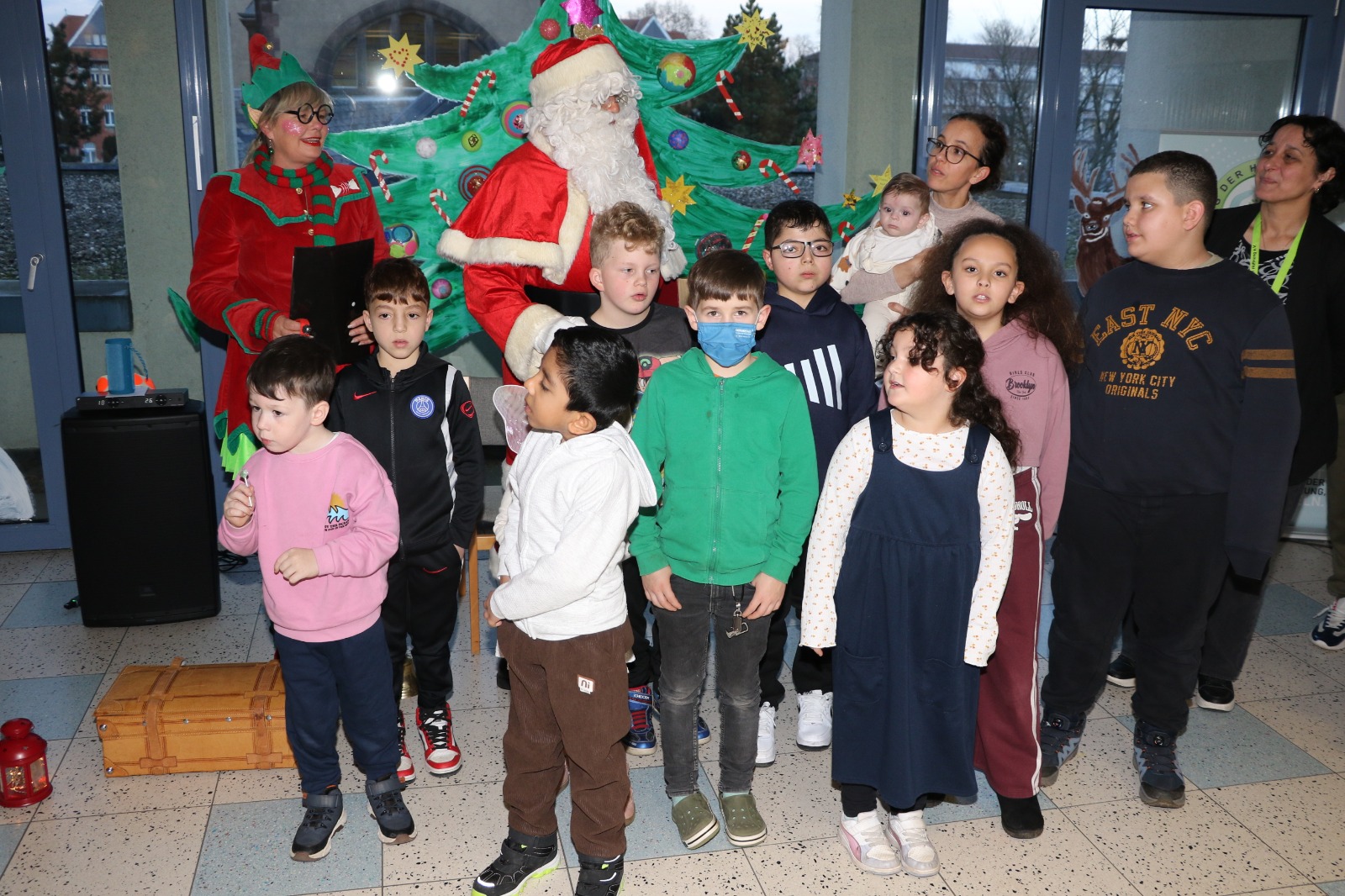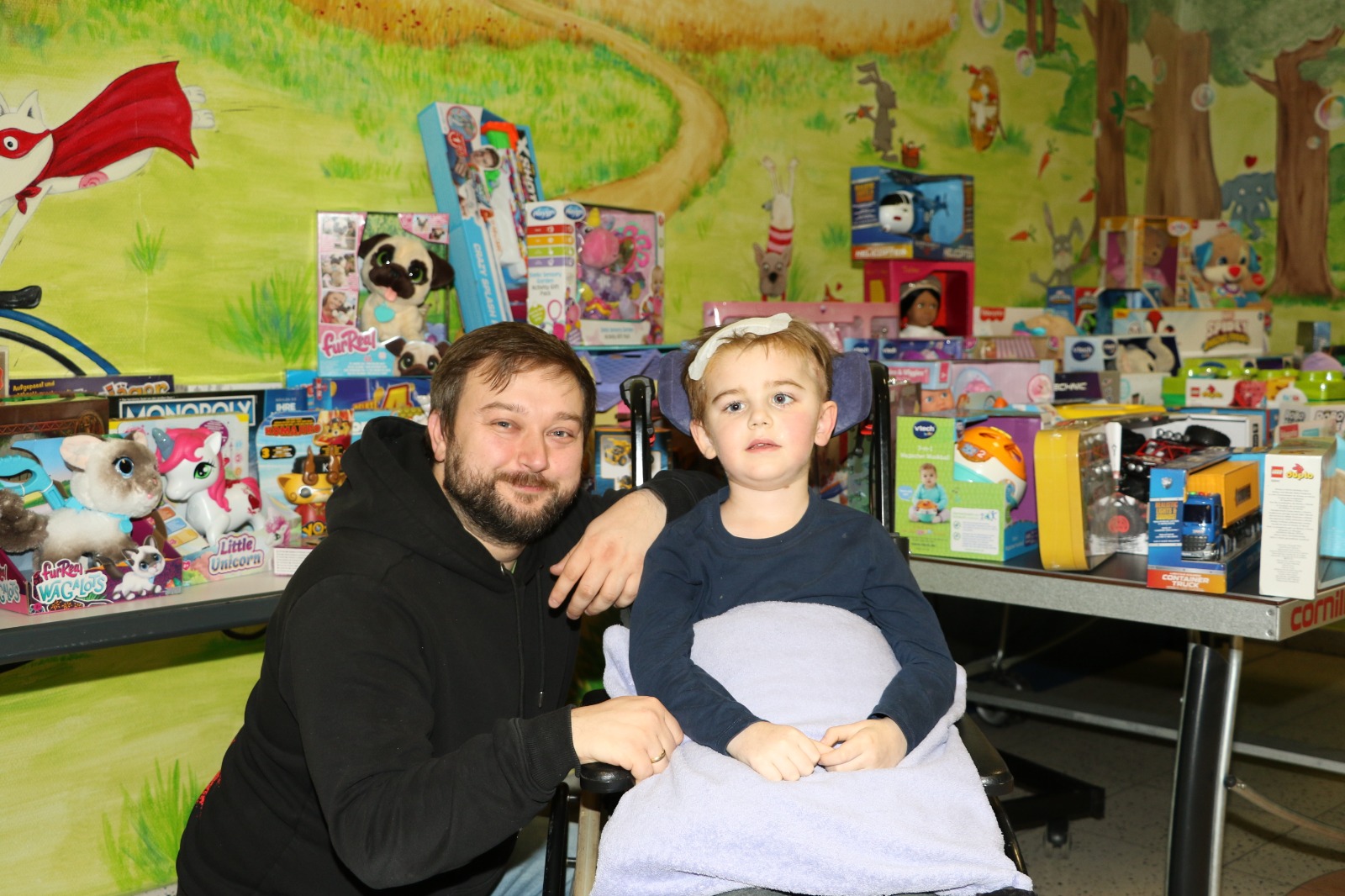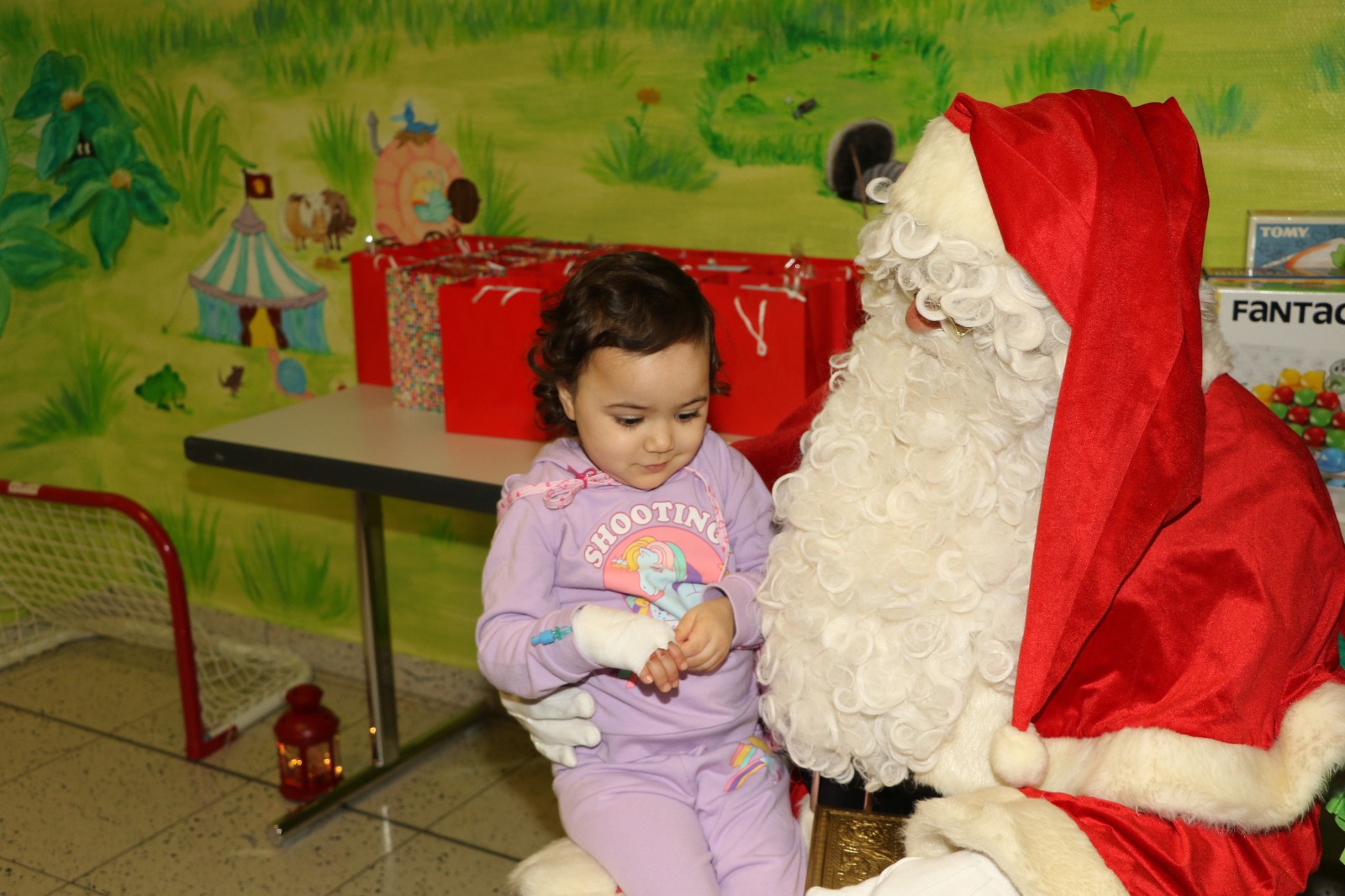 Dann wurde es festlich und magisch zugleich: Der Nikolaus besuchte die Station und hatte nicht nur Zeit für liebe Worte, sondern auch für strahlende Kinderaugen. Jedes Kind durfte sich über liebevoll ausgewählte Geschenke freuen – kleine Aufmerksamkeiten mit großer Wirkung. Zusätzlich erhielt jedes Kind eine prall gefüllte Tüte mit Süßigkeiten, die für viele ein Stück unbeschwerte Freude bedeutete. Als schließlich Stitch erschien, war das Glück vollkommen – Kinderlachen erfüllte den Raum, und für einen Moment schien alles andere in den Hintergrund zu treten.